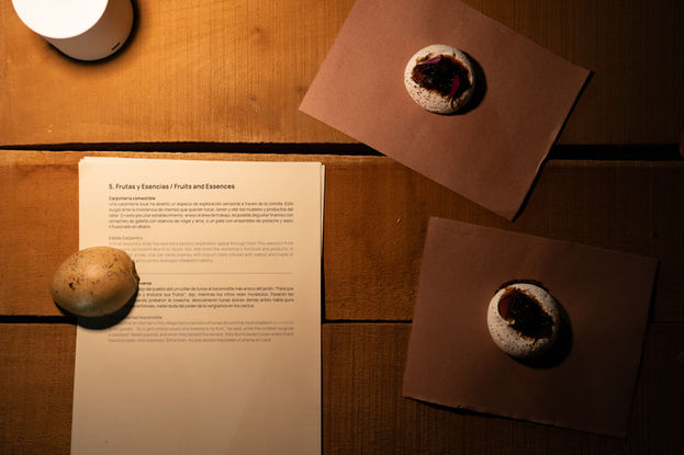 Retoma la construcción de narrativas ficticias en torno a objetos y artefactos, para crear metaficciones sobre los ingredientes, las recetas y sus preparaciones y el ensamblaje de materias vivas que respiran, se contraen, poseen olores, y texturas y que también envejecen y se degradan como es el caso de la madera y los alimentos, para así promover la creación de objetos comestibles con ensambles de ficciones.